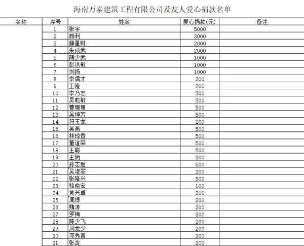 1月28日,我們?cè)诤D先f(wàn)泰建筑公眾號(hào)發(fā)布了海南萬(wàn)泰公司張小龍總經(jīng)理和海口市老年人福利院項(xiàng)目負(fù)責(zé)人林莉共同出資5萬(wàn)元購(gòu)買(mǎi)5000個(gè)N95口罩及飛利浦G31E病人監(jiān)護(hù)儀1套捐贈(zèng)給武穴市及張小龍總經(jīng)理組織同胞募捐的文章《心系荊楚,共渡難關(guān),這場(chǎng)戰(zhàn)“疫”,海南萬(wàn)泰在行動(dòng)!》,在公司引起了極大反響,大家主動(dòng)問(wèn)詢(xún)?nèi)绾尉杩顬楹币咔楸M一份力,大家的一腔熱血和愛(ài)心令人動(dòng)容,由此,我們迅速成立萬(wàn)泰籌募組,在公司內(nèi)部展開(kāi)了愛(ài)心捐款。愛(ài)心捐款行動(dòng)一呼百應(yīng),在短短不到兩天的時(shí)間里,萬(wàn)泰募捐組就收到了來(lái)自公司員工,萬(wàn)泰各地項(xiàng)目部及公司的合作友人的支持。截止目前,萬(wàn)泰籌募組已籌得284380元的善款!這些善款,我們已全部捐贈(zèng)給武穴市梅川鎮(zhèn)政府用于抗擊湖北疫情。捐款情況已向海南省湖北商會(huì),武穴市工商聯(lián),武穴市統(tǒng)戰(zhàn)部匯報(bào)。后續(xù)我們將跟蹤款項(xiàng)用途。