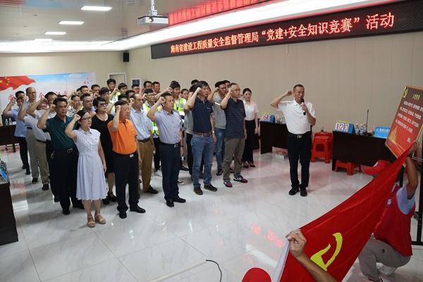 為推進(jìn)基層黨組織聯(lián)建共建,深入開(kāi)展全國(guó)“安全生產(chǎn)月”活動(dòng),落實(shí)公司關(guān)于安全生產(chǎn)工作的要求,牢固樹(shù)立安全發(fā)展理念,七一前夕,海南萬(wàn)泰公司組織隊(duì)伍參加了由海南省建設(shè)工程質(zhì)量安全監(jiān)督管理局舉辦的“黨建+安全知識(shí)競(jìng)賽”活動(dòng),省廳張運(yùn)臻處長(zhǎng),省質(zhì)安局陳雷書(shū)記、劉長(zhǎng)征副局長(zhǎng)等有關(guān)領(lǐng)導(dǎo)參加活動(dòng)。