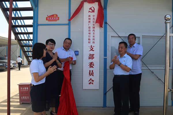 最后,傅愛萍副書記帶領大家共同為“長安制藥美安科技新城項目臨時黨支部”揭牌,開啟了項目支部建設的新征程,現(xiàn)場全體人員共同見證了這個難忘的時刻。