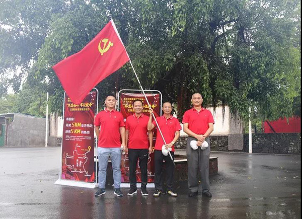 上午7點,大家于施茶村村委會文化室前聚集,在丁飛局長發(fā)表動員講話后,全員冒雨出發(fā)。