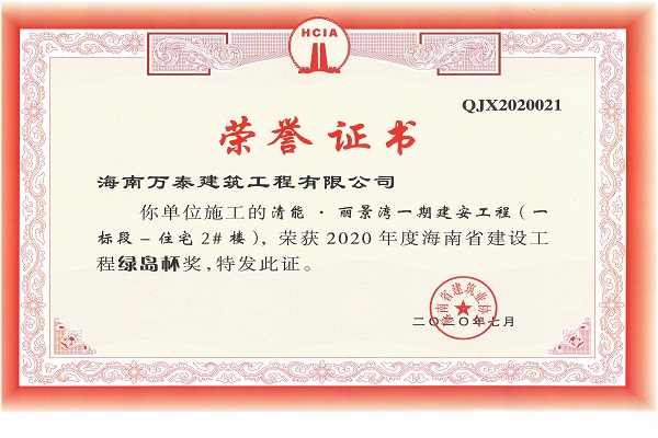 海南省建設(shè)工程“綠島杯”代表著海南省工程建設(shè)的最高質(zhì)量水平。海南萬泰公司獲得此項榮譽,不僅是對“清能·麗景灣一期建安工程(一標段—住宅2#樓)質(zhì)量的肯定,也是對海南萬泰公司管理水平的肯定。
