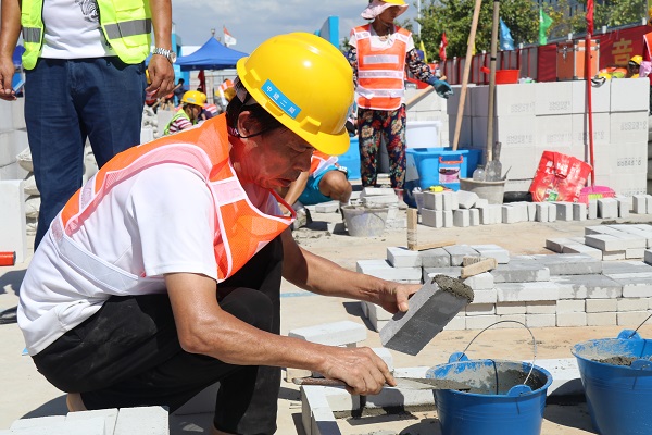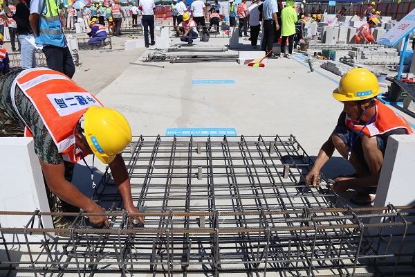 本次競賽隊伍有來自中央駐瓊及省屬大型企事業(yè)單位、各地市企事業(yè)單位,競賽共有砌筑工、鋼筋工2個職業(yè)(工種),砌筑工和鋼筋工各17支單位隊伍,共100多名選手參賽,競賽內(nèi)容均由理論考試和實際操作比賽兩部分組成。公司每個工種各選派出1支隊伍參加了競賽,公司黨支部及工會還組織陣容強大的啦啦隊伍到場為選手助陣。