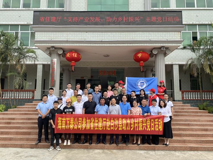 為發(fā)揮企業(yè)力量,推進(jìn)鄉(xiāng)村產(chǎn)業(yè)發(fā)展,促進(jìn)黨建工作同鄉(xiāng)村振興有效銜接,助力海南自由貿(mào)易港建設(shè),按照省住建廳《支持產(chǎn)業(yè)發(fā)展助力鄉(xiāng)村振興主題黨日活動方案》的相關(guān)要求,3月19日, 海南萬泰公司參加了省廳機(jī)關(guān)黨委組織的赴白沙縣七坊鎮(zhèn)高石村開展的主題黨日活動。省住建廳機(jī)關(guān)黨委專職副書記莫百超、辦公室副主任楊洲、廳相關(guān)部門負(fù)責(zé)人及中化學(xué)建設(shè)(海南)公司、中建三局集團(tuán)(海南)公司、廣西建工集團(tuán)四公司、湖南省第六工程公司、中誠投集團(tuán)八局、中建中聯(lián)集團(tuán)、湖南省湘天建設(shè)公司等企業(yè)相關(guān)人員參加了本次活動。