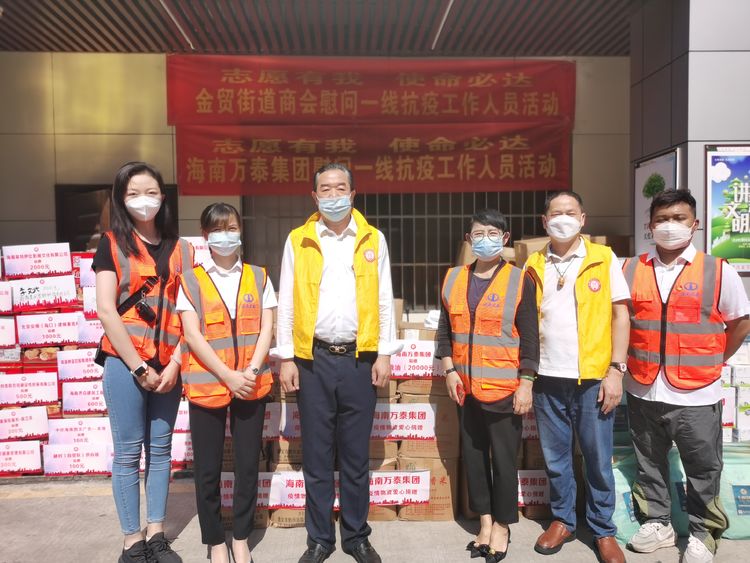 最美人間四月天,同心戰(zhàn)“疫”向未來。四月,隨著國內(nèi)新冠疫情形勢越來越嚴(yán)重,省內(nèi)疫情也隨之洶涌襲來,在這危急關(guān)頭,眾多志愿者主動(dòng)向前,迎難而上,手拉手筑起了疫情防控戰(zhàn)線,保障了人民百姓的健康安危,為向一線抗疫工作人員表達(dá)感謝之情,展現(xiàn)互幫互助、互相扶持、無私奉獻(xiàn)的中華民族優(yōu)秀精神,2022年4月8日,海南萬泰集團(tuán)主動(dòng)參加了由龍華區(qū)金貿(mào)街道商會(huì)主辦的慰問一線抗疫工作人員活動(dòng)。萬泰公司常務(wù)副總顏利、黨支部書記孟晨、總經(jīng)理助理曹珊珊等一行參加了本次活動(dòng),共計(jì)捐贈(zèng)了價(jià)值20000元的糧油。