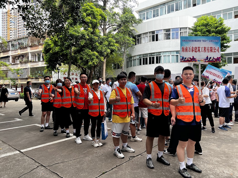 四月芳菲盡,五月花盛開。為深入落實(shí)省住建廳《關(guān)于舉辦“慶五一”五繩拔河比賽活動(dòng)的通知》,豐富公司職工業(yè)余文化生活,提高身體素質(zhì),5月15日上午,海南萬泰建筑工程有限公司黨支部、工會(huì)組織員工參加了由省住建廳主辦的“慶五一”五繩拔河比賽。省住建廳副廳長陳孝京、省建設(shè)工會(huì)專職副主席劉志偉、機(jī)關(guān)黨委專職副書記莫百超,廳相關(guān)處室、直屬單位及部分基層工會(huì)有關(guān)人員參加了本次比賽活動(dòng)。萬泰公司對(duì)本次活動(dòng)非常重視,派出了由王斌、王威、張豪杰、張樂開、林溪婷、孫彤、張會(huì)嶺組成的男女拔河隊(duì),韓文劍副總親自率隊(duì)組成啦啦隊(duì)全程加油助威。