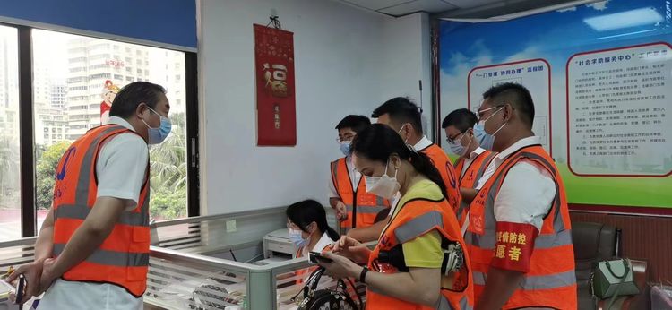 當好“守門人”,社企同心保家園。疫情防控期間,海南萬泰志愿者隊伍幫居民送菜送飯、撥打電話進行流調(diào)、值守臨時監(jiān)管區(qū)域等,在街道辦辦公室內(nèi)撥打流調(diào)電話,為滯留海南的人員及有困難的人員提供咨詢服務(wù),并提醒按要求做核酸檢測,當醫(yī)護人員緊缺時還要穿上“大白”進行掃碼、運送物資。海南萬泰志愿者們始終沖在一線,為街道社區(qū)筑起了一道道堅實的戰(zhàn)“疫”防線。