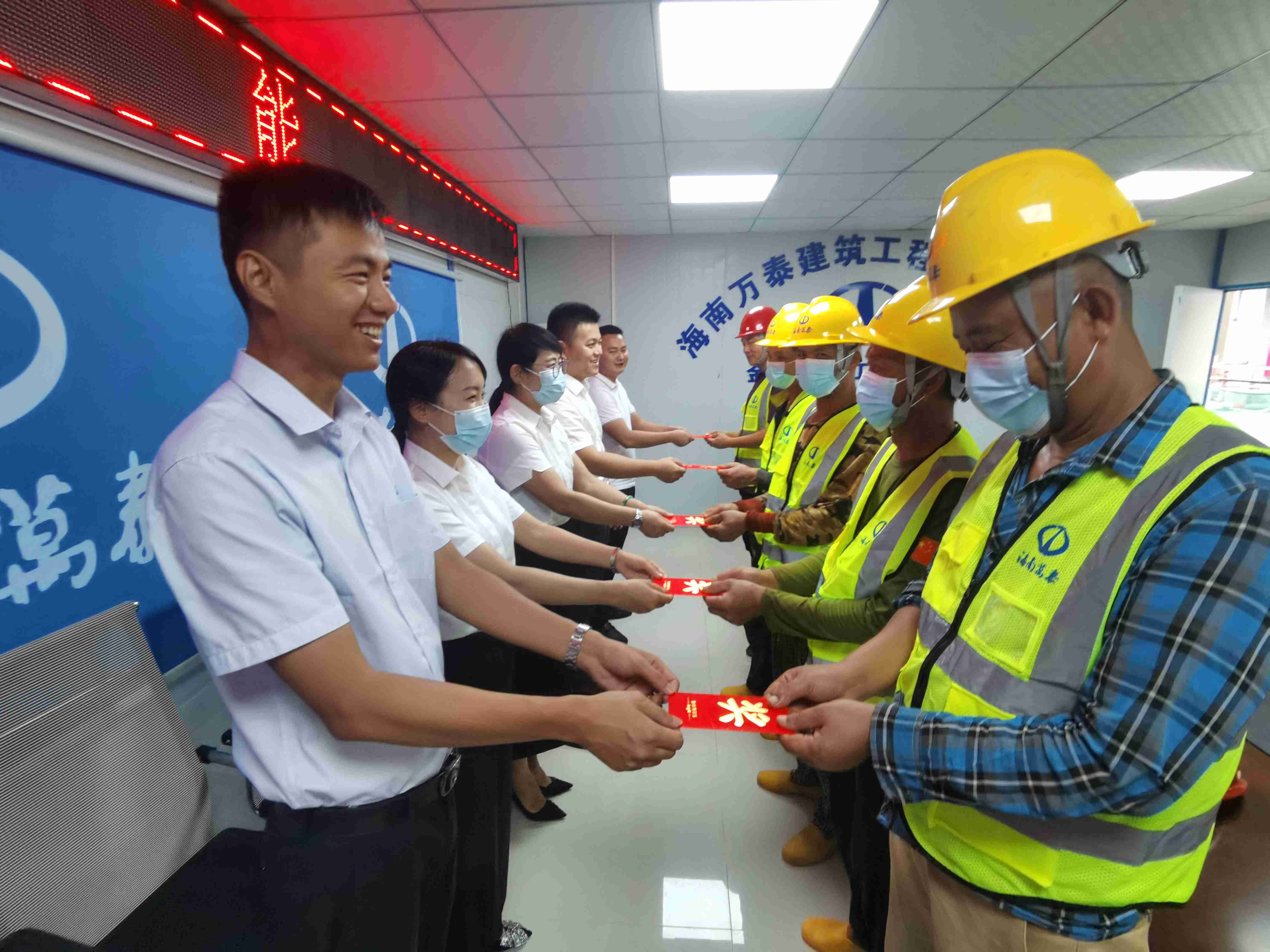 為了學(xué)習(xí)貫徹黨的二十大報(bào)告,把二十大精神落實(shí)到推動(dòng)企業(yè)高質(zhì)量發(fā)展過(guò)程中,表彰先進(jìn),樹(shù)立典型,進(jìn)一步增強(qiáng)員工的自豪感、集體榮譽(yù)感及團(tuán)隊(duì)凝聚力,2022年11月18日,在省建設(shè)工會(huì)的支持下,海南萬(wàn)泰公司組織人員到公司承建的瓊海金輝雅苑項(xiàng)目部,對(duì)在參加2022年省建筑業(yè)職業(yè)職工技能競(jìng)賽中榮獲木工三等獎(jiǎng)的孫仲文團(tuán)隊(duì)進(jìn)行了表彰,并召開(kāi)了座談交流會(huì),會(huì)上大家學(xué)習(xí)了二十大報(bào)告有關(guān)章節(jié),分享交流比賽心得,以此樹(shù)立先進(jìn)標(biāo)桿,鼓舞工人干勁。公司黨支部、工會(huì)、工程部以及金輝雅苑項(xiàng)目部管理人員及一線工人等參加本次活動(dòng)。