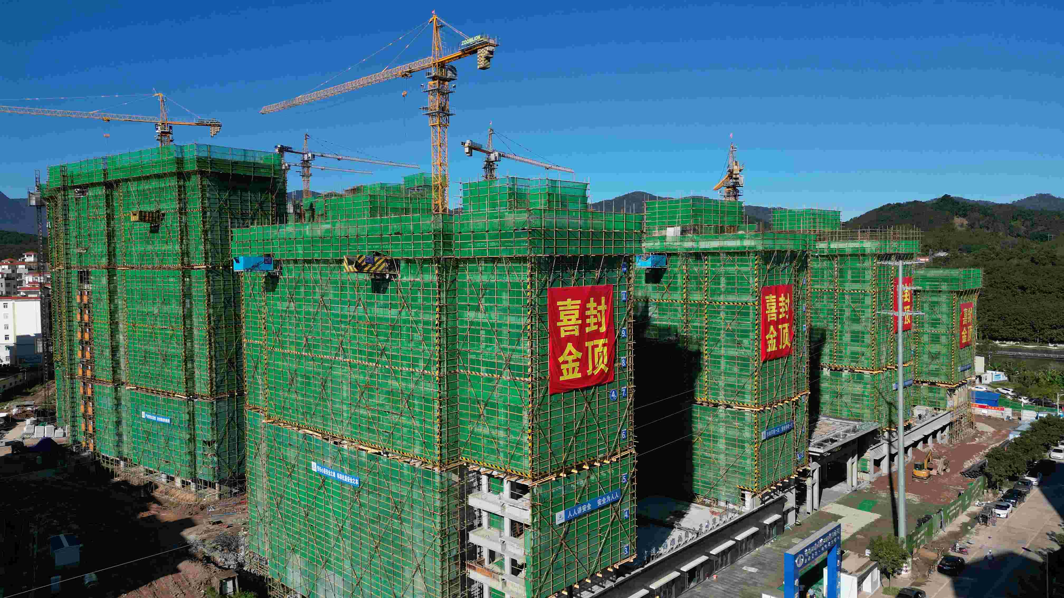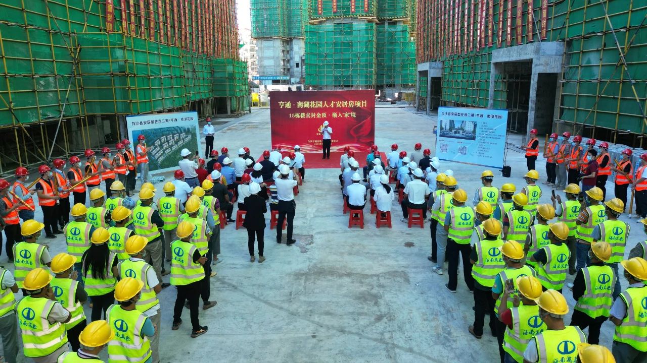 海南萬泰承建的白沙亨通·南湖花園項目主體結(jié)構(gòu)喜迎全面封頂