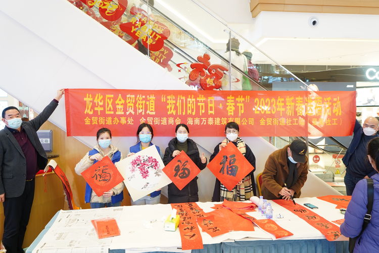 下午,海南萬泰公司參加了由轄區(qū)金貿街道工委、金貿街道商會等單位在友誼·陽光城一樓舉辦的2023年新春送福活動。面對廣大居民群眾的期待,書法家們鋪紙、沾墨、起筆、落筆,一起一落行云流水,一撇一捺龍蛇騰躍,在紅彤彤的紙上揮毫潑墨,洋洋灑灑地寫下一個個飽含新春祝福的“福”字、一副副對仗工整,寓意美好的春聯(lián)、一張張栩栩如生的花鳥畫,以免費贈予的形式,向大家送上了兔年祝福,活動現(xiàn)場到處洋溢著新春的氣氛。