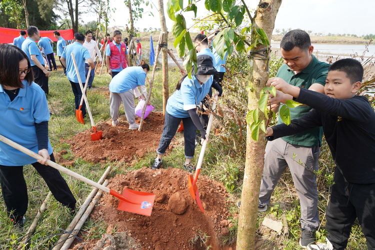 為了貫徹落實黨的二十大關(guān)于“推動綠色發(fā)展,促進人與自然和諧共生”的要求,共建優(yōu)美和諧海南,提升黨員的愛綠護綠意識,加強基層黨支部聯(lián)創(chuàng)共建,海南萬泰公司黨支部積極響應(yīng)上級黨委的號召,2023年3月12日,參加了由省住建廳機關(guān)黨委、行業(yè)黨委在江東新區(qū)邁雅河濕地公園組織開展的“植樹添綠,黨旗增輝”支部共建義務(wù)植樹活動,省廳相關(guān)處室和工會黨支部、省建設(shè)信息協(xié)會黨支部及相關(guān)企業(yè)支部約60余人參加了本次活動。
