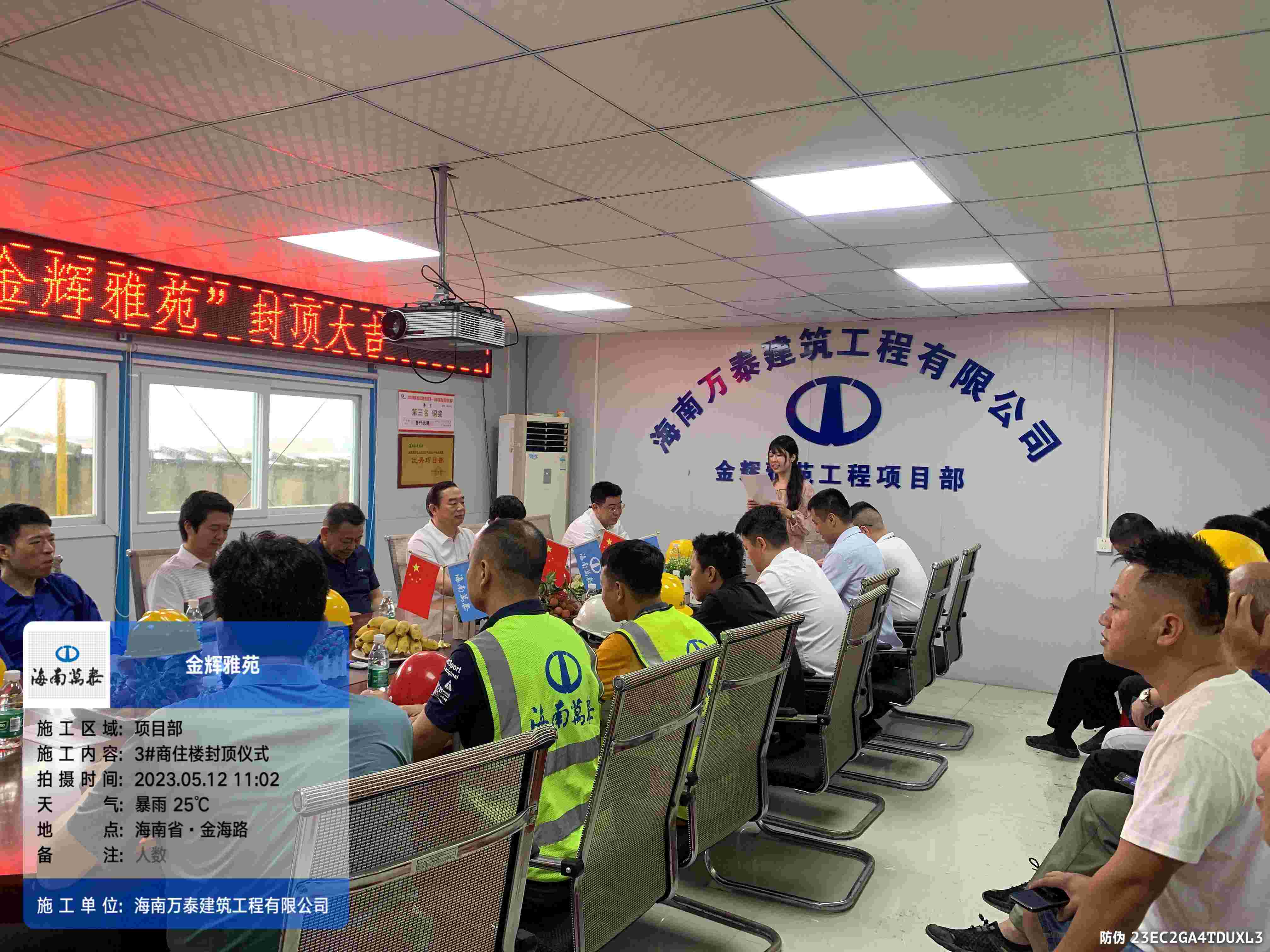 金梁拔地千年固,玉柱擎天萬事興。2023年5月12日上午,海南萬泰承建的瓊海金輝雅苑項目喜封金頂,封頂儀式在項目工地現(xiàn)場圓滿舉辦,海南輝景房地產(chǎn)開發(fā)有限責任公司董事長劉輝、股東文靖杰、總經(jīng)理陳小勇,海南萬泰建筑工程有限公司常務(wù)副總經(jīng)理顏利、工程一處總助袁軍、工程部副部長張豪杰、項目經(jīng)理劉達濱以及監(jiān)理等參與和支持項目建設(shè)的各級領(lǐng)導出席了本次活動,共同見證這一喜慶時刻。