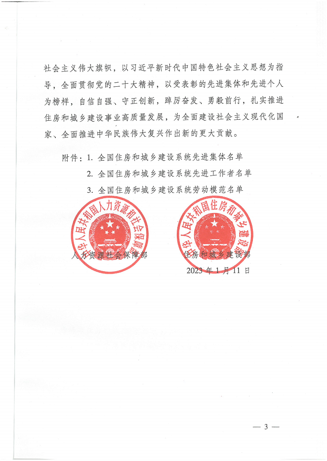 此次通報表揚,是繼公司去年年底被中華人民共和國人力資源和社會保障部、中華人民共和國住房和城鄉(xiāng)建設(shè)部評為“全國住房和城鄉(xiāng)建設(shè)系統(tǒng)先進集體”以來又一次獲得省級以上相關(guān)部門的表揚與認可!
