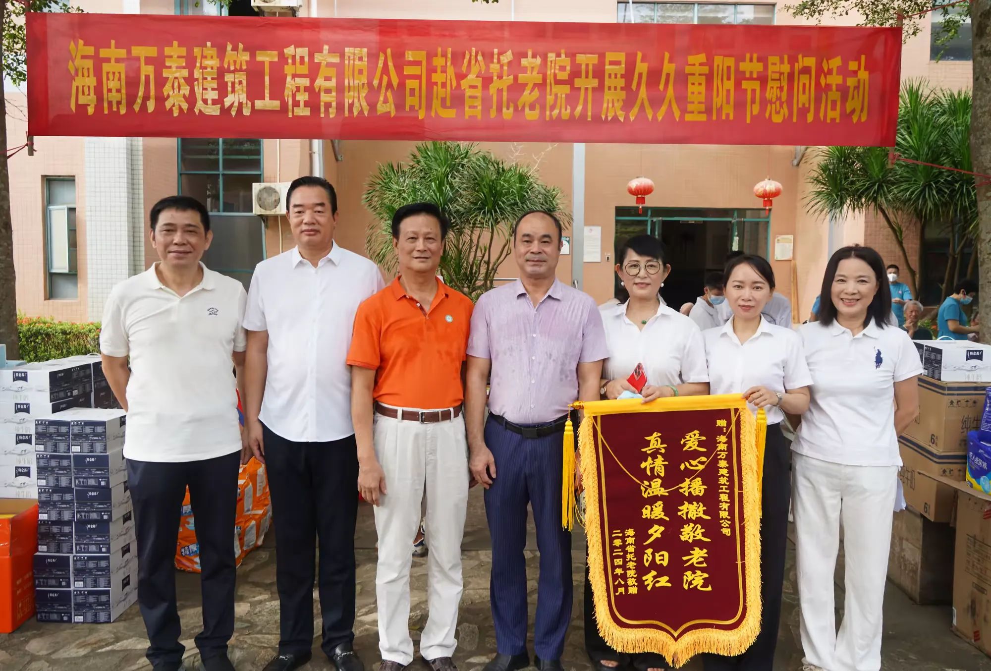 8月19日,為進一步發(fā)揚企業(yè)愛心之舉,傳播敬老愛老養(yǎng)老的優(yōu)秀傳統(tǒng)文化精神,在中秋、重陽節(jié)即將到來之際,海南萬泰建筑工程有限公司參加了由海口市龍華區(qū)關工委、龍華區(qū)金貿街道商會、海南愛心企家團隊聯(lián)合舉辦的慰問活動。公司總經理顏利及黨支部、工會有關人員參加本次活動。