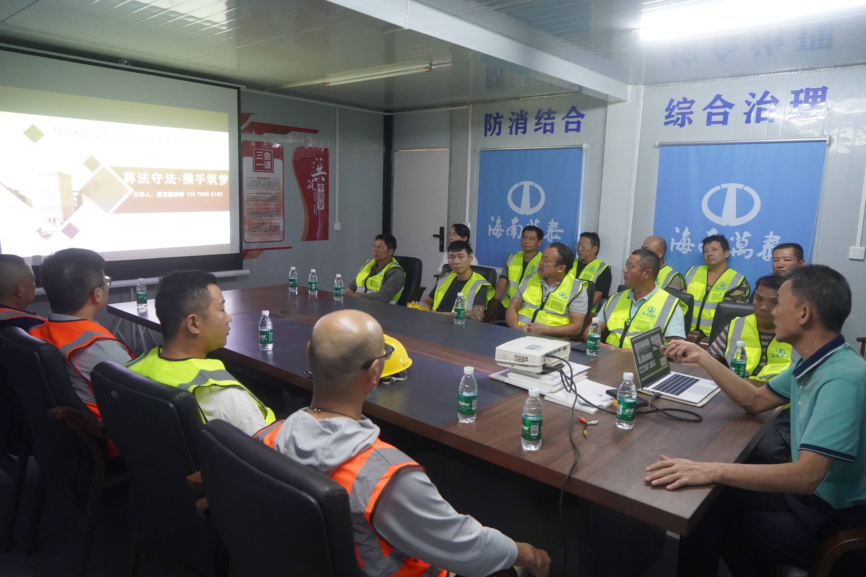 為進(jìn)一步做好普法宣傳工作,增強(qiáng)基層職工的維權(quán)意識,10月20日下午,由海南省建設(shè)工會主辦的“送法律講座進(jìn)企業(yè)進(jìn)工地”活動走進(jìn)海南萬泰建筑工程有限公司承建的江東新區(qū)國際消費(fèi)精品產(chǎn)業(yè)港項目工地現(xiàn)場。近20名項目管理人員及工人代表參與此次普法課堂,活動旨在強(qiáng)化基層職工法律意識與維權(quán)能力。