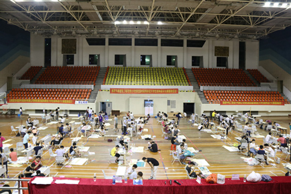 9點(diǎn)整,由海南大學(xué)校土木建筑系領(lǐng)導(dǎo)宣布比賽正式開(kāi)始,同學(xué)們迫不及待的開(kāi)始動(dòng)手制作模型。薄如紙片的竹皮要裁切成相等長(zhǎng)度和寬度的長(zhǎng)條,用502膠水粘成竹棍,作為塔架的主梁和柱子。不僅要承受的住幾十斤鐵塊的重壓,還要承受的住相當(dāng)于汶川地震級(jí)別的加載測(cè)試。選手們一個(gè)個(gè)信心滿滿,細(xì)心耐心加上專心。根據(jù)規(guī)則,比賽提供的膠水竹皮等材料如果不夠是不補(bǔ)發(fā)的,所以大家都小心翼翼,生怕出現(xiàn)意外。