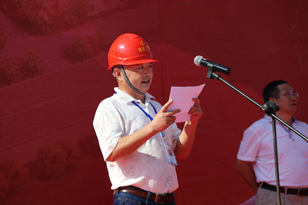 海口市城市建設(shè)投資有限公司董事長(zhǎng)韓東光宣布開工典禮開始,海南萬泰公司總工程師鄒進(jìn)安代表施工方發(fā)表了致辭,鄭重承諾萬泰公司將組建最強(qiáng)有力的管理團(tuán)隊(duì),秉承“誠(chéng)信務(wù)實(shí)、創(chuàng)新進(jìn)取”的施工理念,嚴(yán)格按照施工規(guī)范、工藝流程、質(zhì)量體系及海口市工地的“雙創(chuàng)”標(biāo)準(zhǔn),精心制定嚴(yán)密的施工進(jìn)度計(jì)劃,從第一道工序開始抓質(zhì)量;從第一個(gè)工作日開始抓進(jìn)度;從每一個(gè)細(xì)節(jié)處抓安全文明施工。保質(zhì)、保量按期完成工程的建設(shè),把北師大海口附校及培訓(xùn)基地項(xiàng)目建設(shè)成一個(gè)精品工程、滿意工程。